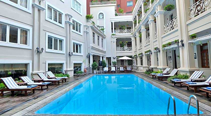Making reservations for Grand Hotel Saigon on this website is a secure and straightforward process. To check the nightly rates of Grand Hotel Saigon, simply begin by selecting the desired dates/length of stay and click the "Check Rates" button. Comparison and decisions can then be made with the display of pricing information for each style of guest room. Information regarding room features and amenities is provided in the center of the screen. Having made the decision for dates, room style, and rates, simply locate and click on the "Book Now" button on the right hand side of the screen.