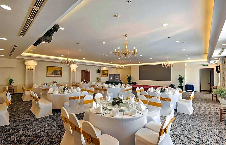 In terms of amenities, the Hotel Grand Saigon offers a functional and stylish design. It includes a 450-seat ballroom, break-out rooms, a recreation area, a Sky Lounge, Western and Asian restaurants, bars, and a rooftop Grand Lounge. These facilities ensure that every guest experience attentive service and enjoys their stay to the fullest.